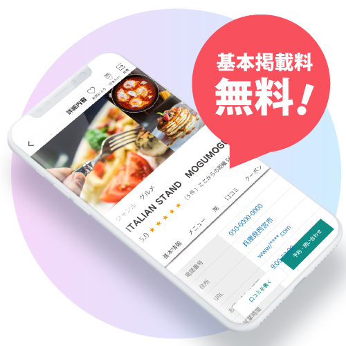 店舗の掲載に関しては無料からはじめる事ができます。有料のプランで最大5,500円のプランまでございます。しかもリリース後、1000ダウンロードまでは料金が発生しませんので、その間、ご使用方法を覚えていただいたり、実際に試していただたりする期間と考えております。