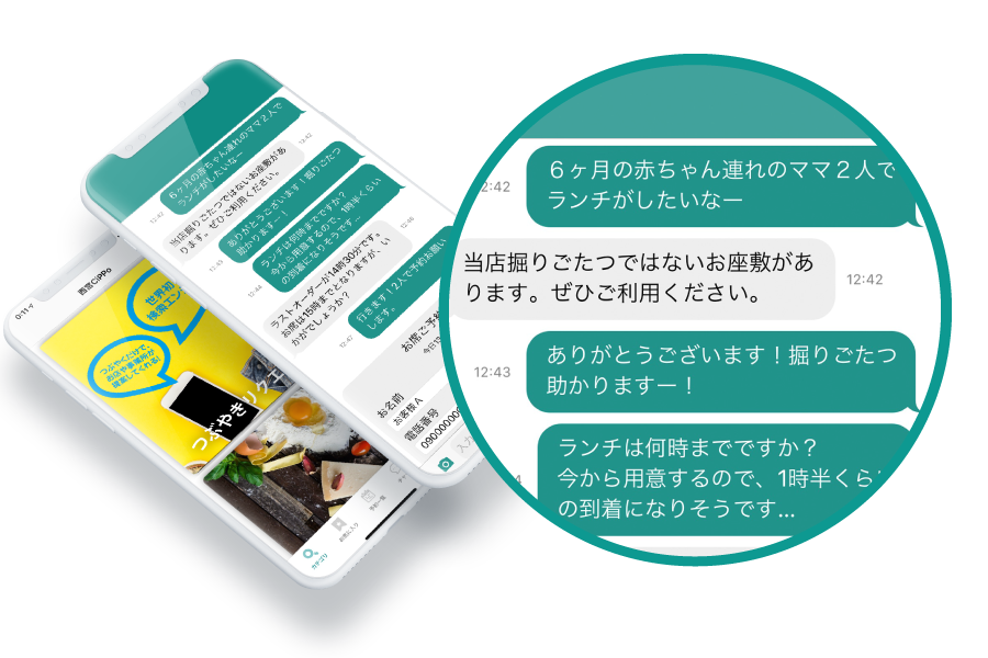 個別対応による店舗側とのやりとりで、店舗予約と求人面接予約の際の流れをチャットによって見える化 し、要望や疑問・不安点なども事前に解決できます。